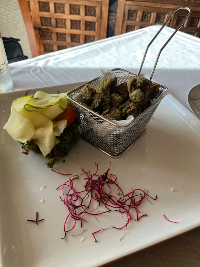 We ordered the cheese plate for a starter, not knowing they bring cheese for a tapa. Wish the waiter would have advised us on something else. I had the cod which was okay but nothing to write home about. Husband had pasta which he enjoyed. They brought bread in a basket and asked which one we wanted, then charged us for it. I thought that was odd. They also charged us for 2 bottles of wine rather than 1, luckily my husband noticed it in the bill.