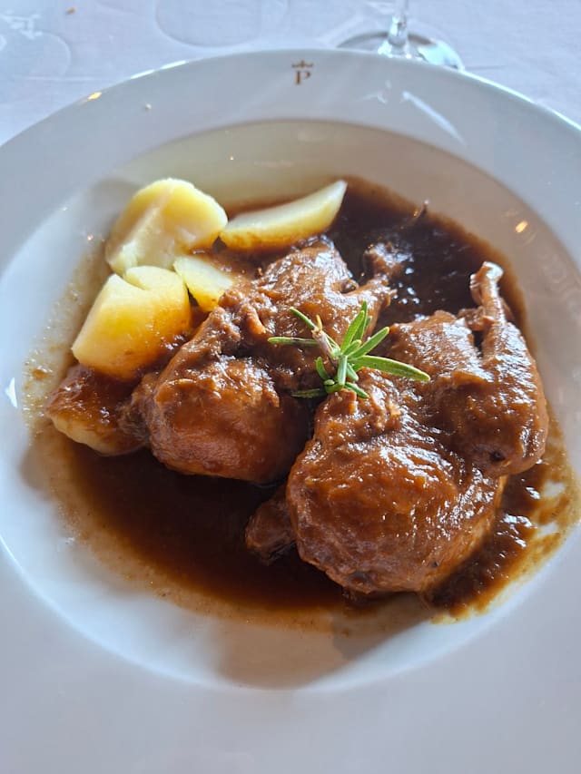 10/10We were staying at the Parador our last nights before flying home and this was our final dinner. Lovely view of Toledo across the river from the Parador. The service was impeccable and our meals were superb. A very nice little splurge.