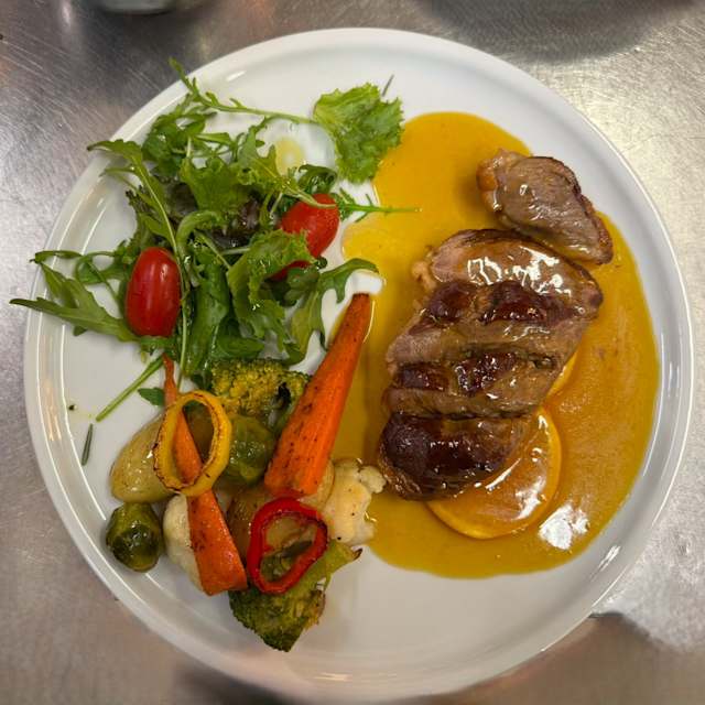 - Peito de pato com laranja / vegetais
