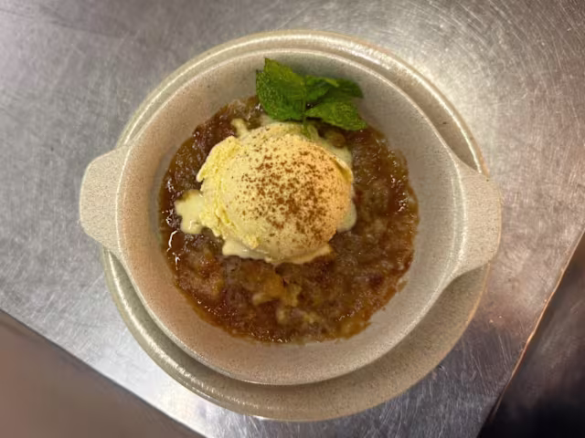 - Apple crumble com gelado de baunilha