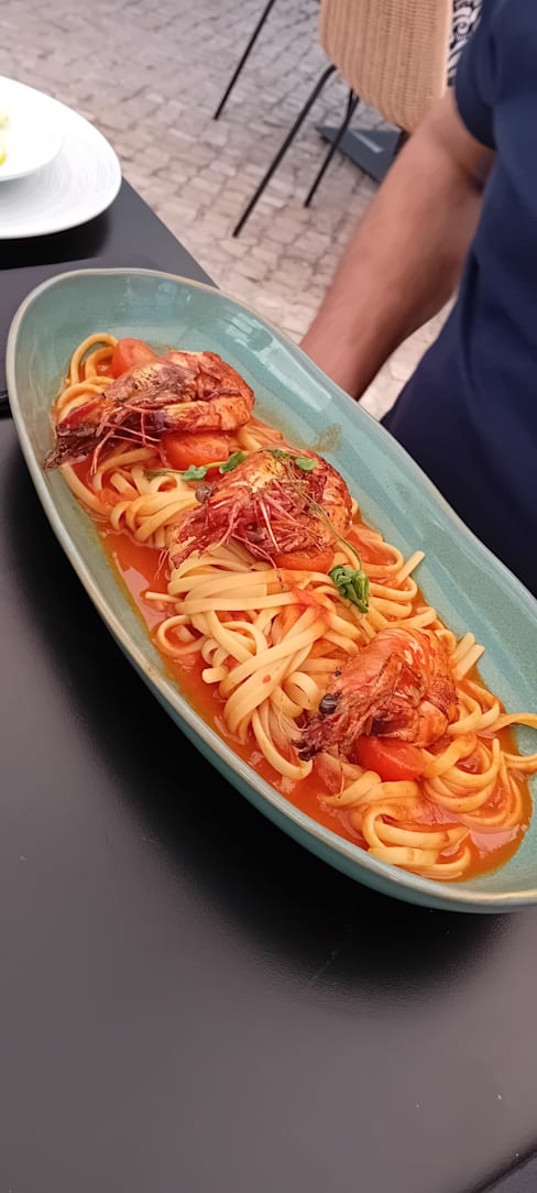 7/10We were a group of 8 adults, the restaurant is in the old section of Portugal right by the beach, the area is lively and fun. Our table was waiting for us when we arrived. The drinks and service were good. We ordered pizza as appetizers which was also good. A few of us pasta dishes as our entree which were mediocre at best.