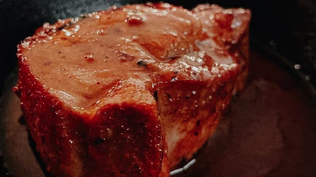 - Prego da vazia grelhado em bolo do caco com parmiggiano e emulsão de alho negro.