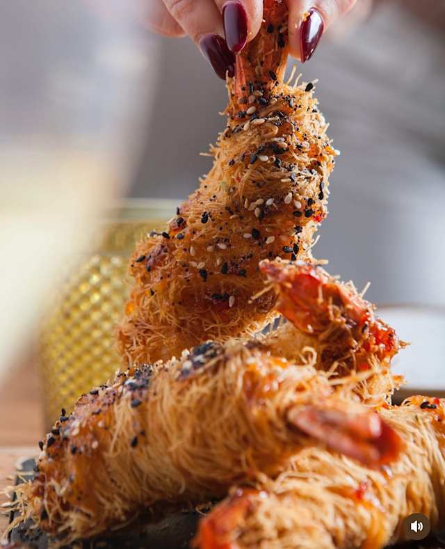 - Crocante de gambas e sweet chilli