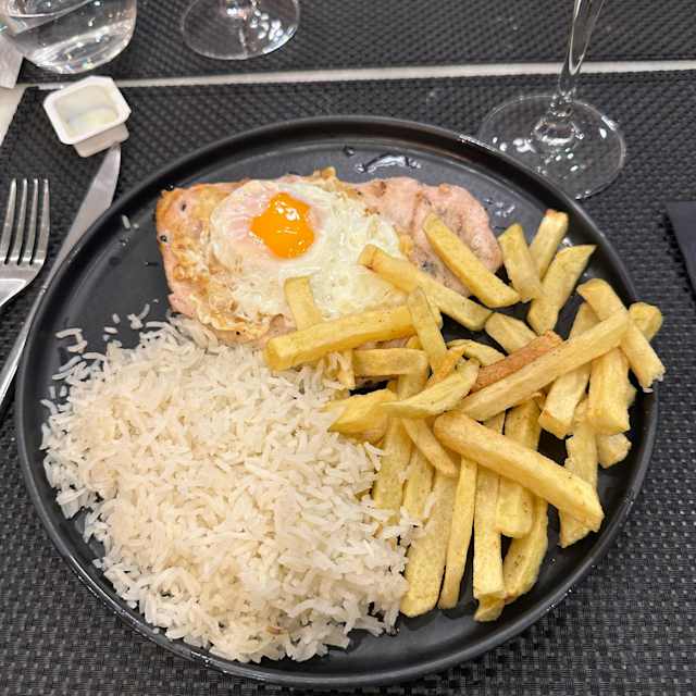 - Com batata-frita e migas