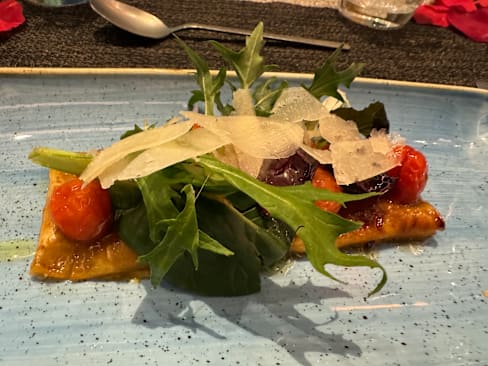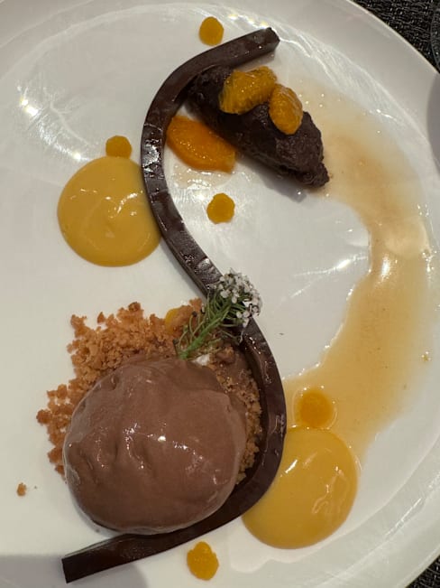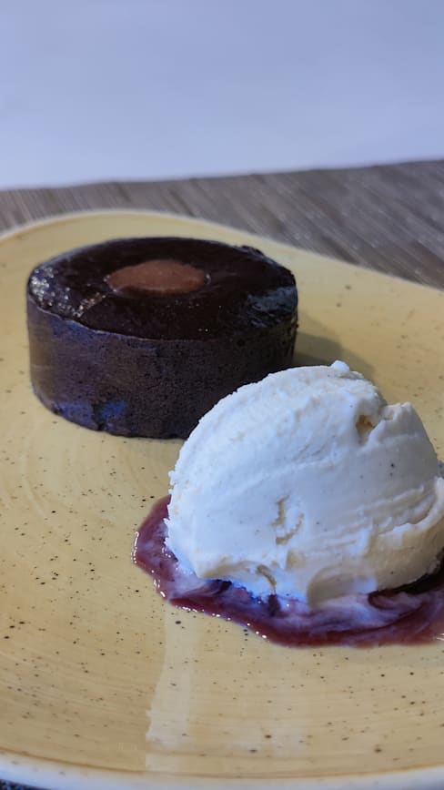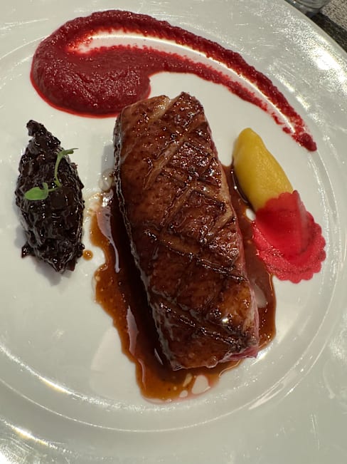 8.5/10Fantastic location. Good ingredients, but better cooking of the fish and meat could have improved the experience. It was a bit dryer than we would have liked. The coulant tasted very nice but came only slightly warmed and firm. It just needs a little more care to elevate this restaurant to exceptional. It's certainly on our list to go back to. Lovely wine!