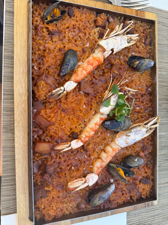 6.5/10A nice experience (although) pricey with some minus, the roof top decor looks worn out and could do with some refreshing. The croquetas we ordered were still frozen in the core no big deal but a bit disappointing again considering the price and the paella and fideua again ok a bit dry. We tried it because it was an offer would not be happy if paying full price. Its clear they need a rethink of their F&B offering - hope my feedback doesn’t read too harshly this can be a stunning place!