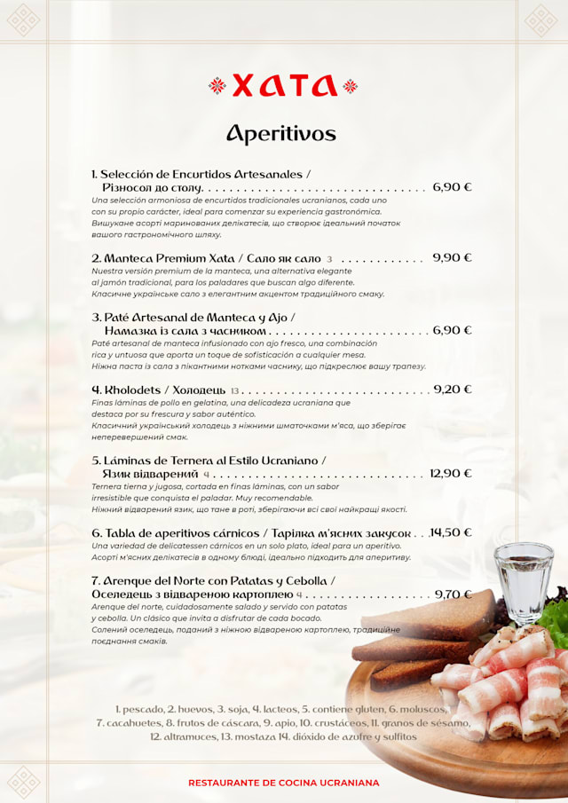 La clásica ensaladilla rusa, reinterpretada con un toque ucraniano y elaborada con ingredientes frescos y de alta calidad.