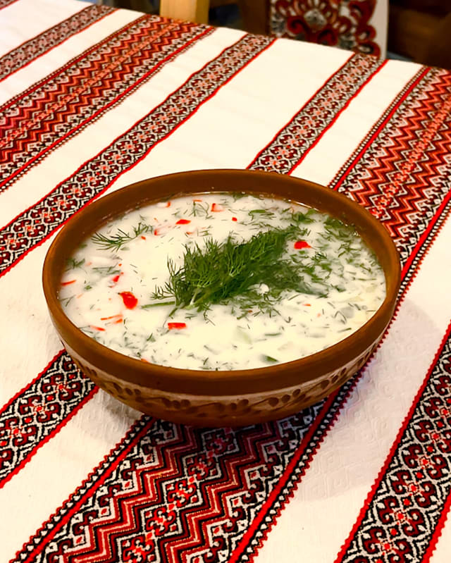 La clásica ensaladilla rusa, reinterpretada con un toque ucraniano y elaborada con ingredientes frescos y de alta calidad.