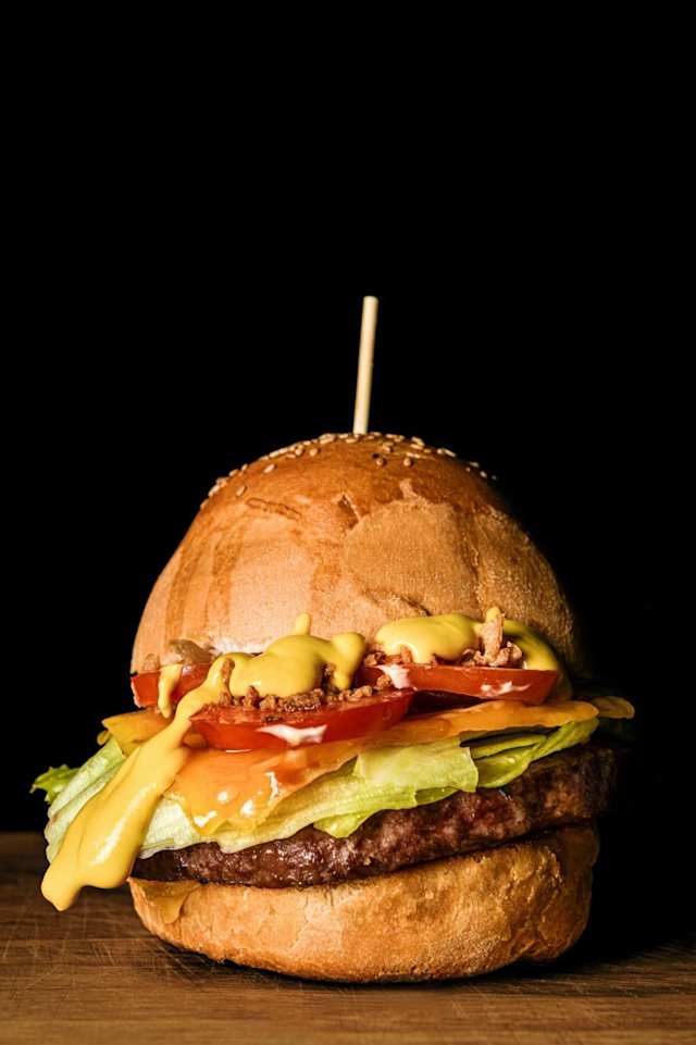 - Hamburger, uova, bacon, cheddar, pomodori, lattuga, salse