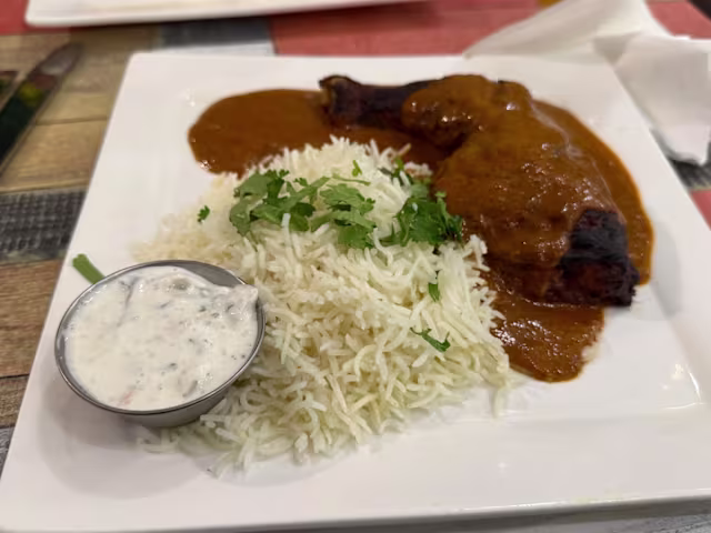 - Plat mijoté servi avec du riz blanc ou naan