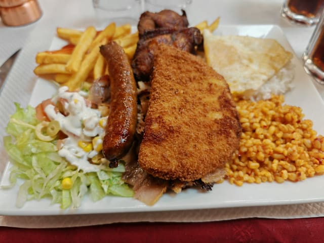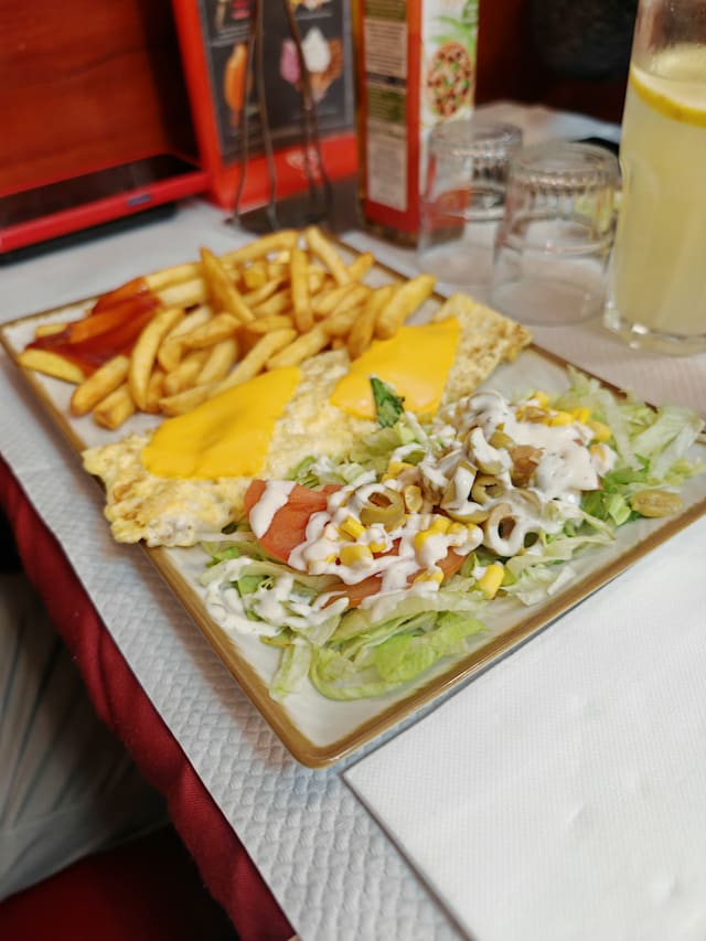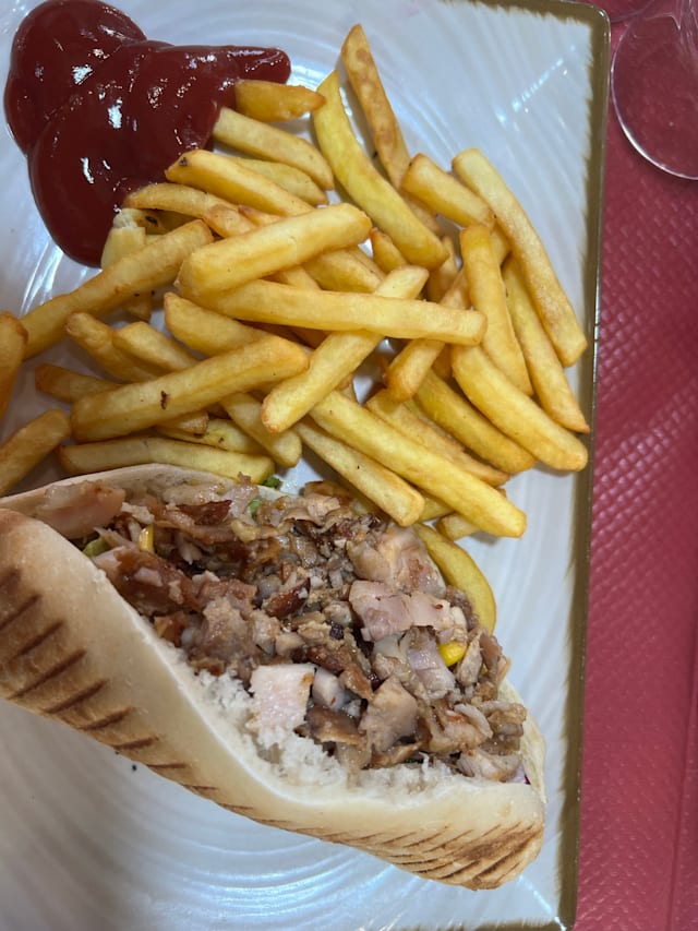 9/10A menu with a wide variety. Food was freshly made and portion was substantial. I requested for un carafe d'eau, which was acknowledged, but wasn't served. I enquired again, and was told there was only bottled water (3€). I declined, and 5 minutes later, a full glass of tap water was brought to me (hence, the 5* rating for knowing when and how to bend the rules in customer service). A small restaurant with only 1 table for 2 people on the outdoor (it was too hot of a day to sit inside).