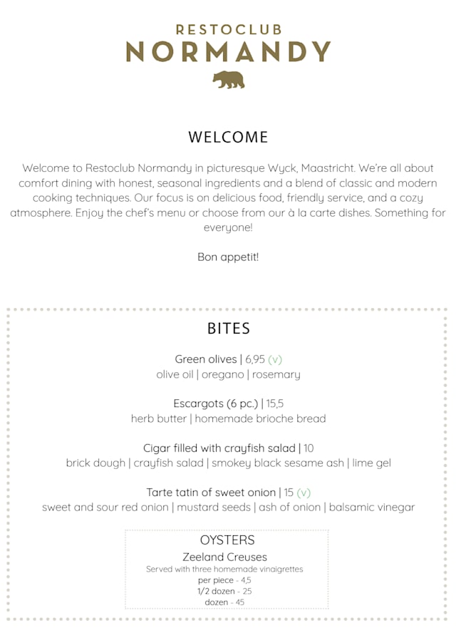 10/10Very tasty food and great staff, I can only recommend RestoClub Normandy. I had a very nice dinner.