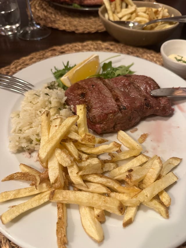 4/10We were at a Family dinner and frequently go to this restaurant even in winter (low season). Food was good but service it was really bad. Employee throw the wine into the glass, some wine went through the glass and the table without cleaning, not even apologize!! they provide meet knifes and assume they should be used for starters, main meal, either if it is meat or fish. Nothing like this is acceptable in a restaurant with those average prices 25€ main meal. 32€/ person in average Unfortunately will not comeback again or recommend this place to friends.