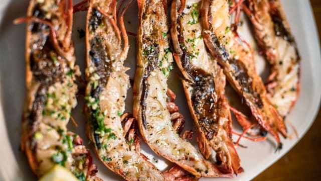Camarão tigre grelhado, com azeite de alho e salsa