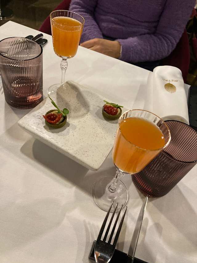 - Petto e coscia di quaglia arrostita, cardoncelli, zucca mantovana, arancia candita e salsa verde