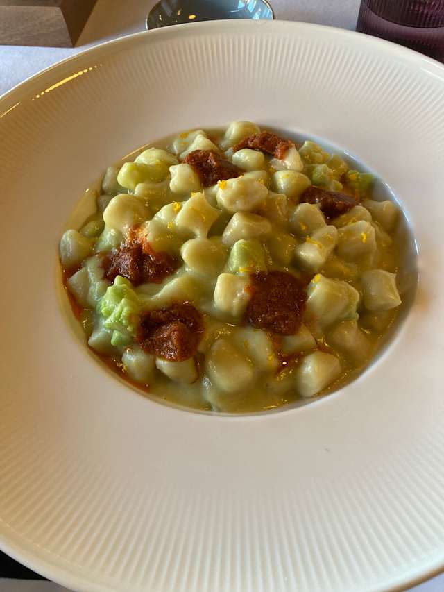 - Roll di rombo, spinaci, zenzero, brodo agli agrumi, scarola napoletana