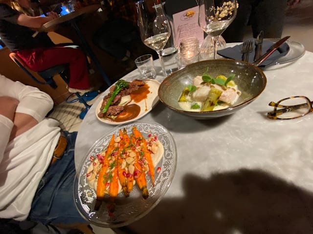 EuropeanMediterraneanMiddle EasternContemporary cuisineCreativeFine DiningGluten freeHalalLactose intoleranceNut allergiesPeanut allergyVegan dishesVegetarian dishesAmerican ExpressDog-FriendlyWifi