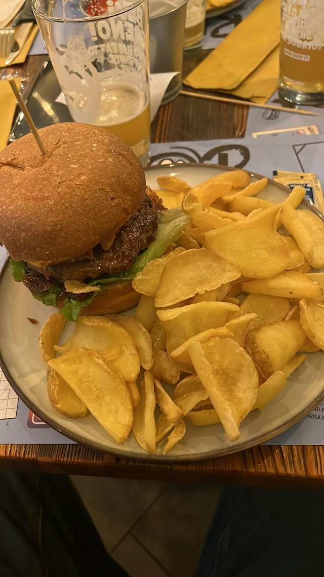 - 200gr. di manzo, crema di cheddar, bacon croccante, crema di lardo, rucola