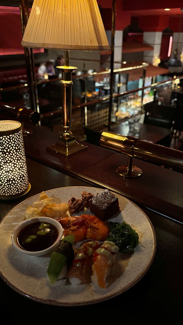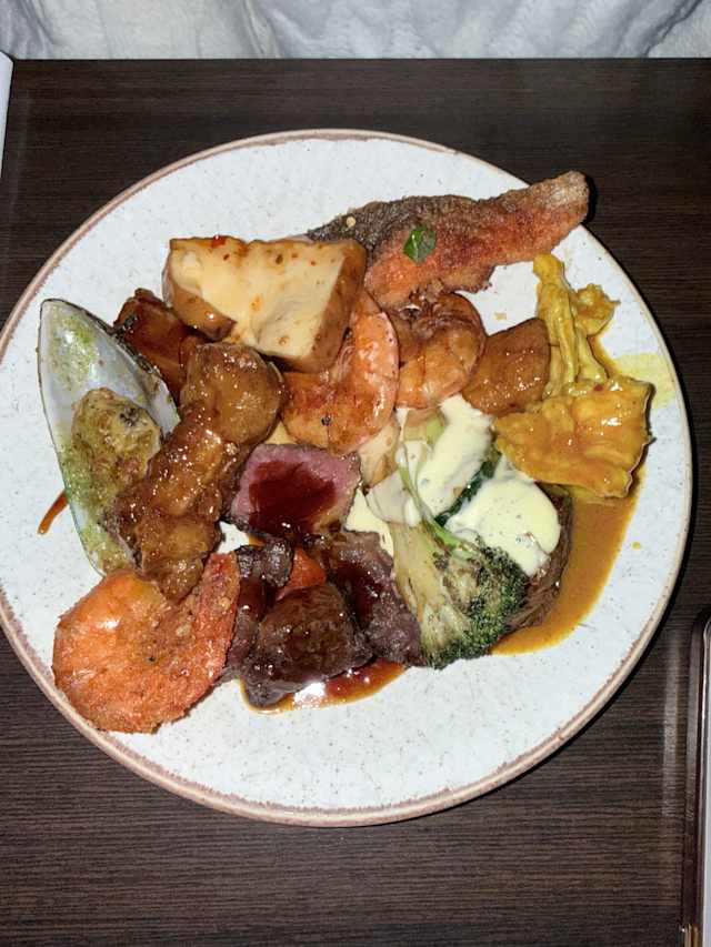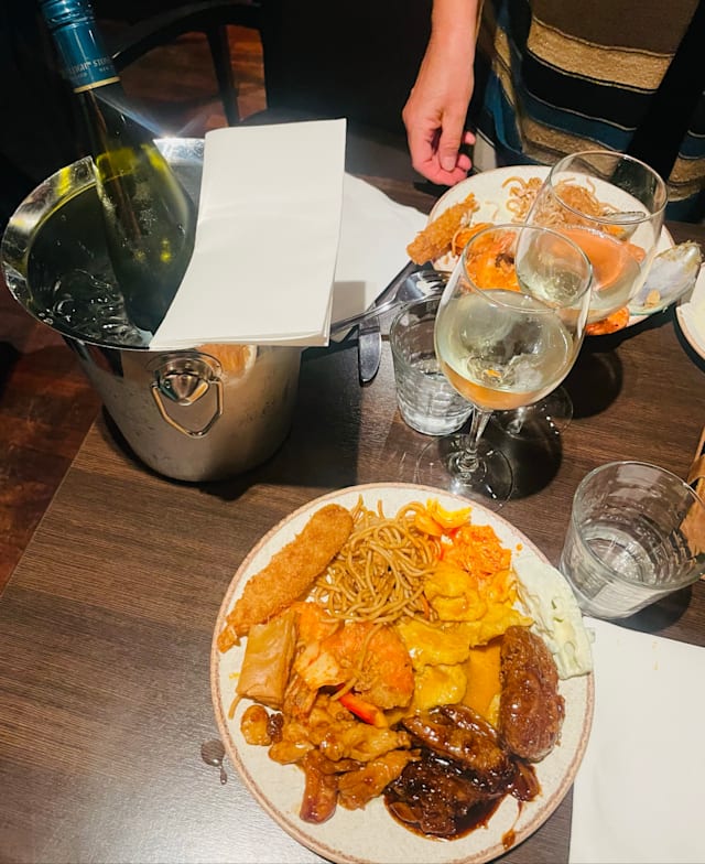 3.5/10we had a table away from the entrance as I asked for in the reservation so that is one star. It is a nice place but too crowded. Large variety of dishes, looks good but it is too salty and dry. In the spring rolls, it is just pastry, most nothing inside. Same with tempura, there is no shrimp in it but the tail. The meat station: beef, duck, lamb, chicken have been cut hours ago and are place there and gets dried out, there us no protection over so open for any body to caught on. The dim sum and the sushis look and taste nice except for the salmon. There is a large choice of vegetables but no cooked vegetables like bok choi or gay lam, what you get is cucumber, carrots, tomatoes, zucchini...the. I'll for 3 was almost 1000 kr for 3 (1 Adult + 2 teenagers) so next time, we go a more genuine Chinese restaurant like Formosa and order 3-4different well cooked dishes to share instead.