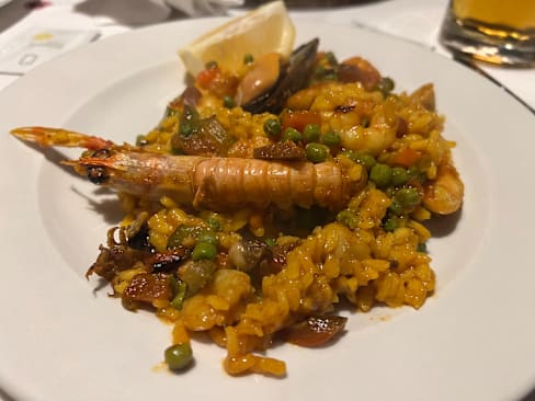 7.5/10The restaurant has a cosy ambiance. The food is very good we ordered gambas, jamon serrano, mejillones and they tasted excellent. The waiters ok