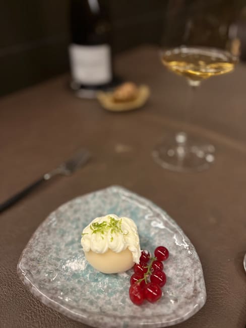 The menu du chef was a very good surprise with great fresh food, great associations of flavors and taste all along - and the wine pairing was also great as we discovered 2 new wines for us: the white Mandolas/Oremus with 100% furmint grapes, and the red Lousas from Encinate with 100% Mencia grapes which was perfect to finish with an almost pure fish and seafood menu. In other words an unforgettable experience for a personal celebration…