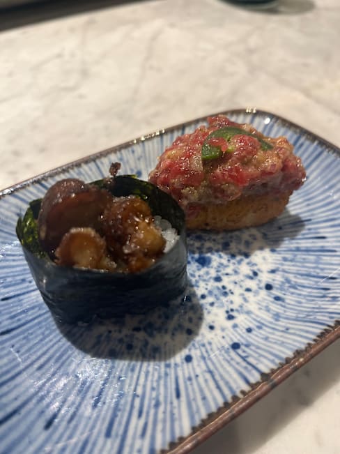 The sushi was overall excellent. For a one stride would have preferred a longer menu but in that respect it is what it is. The bigger issue was service. When it comes to wine - the sommelier did not follow CMS standards for serving champagne, and the floor staff constantly wanted to fill my glass. It was too much. Then, after my meal, the pastry chef had already left / even though it was only 11:00 pm / so I could not get a chocolate desert to pair with my PX. So overall….solid good, meh service. Lots to improve. Unsure if I will come back.