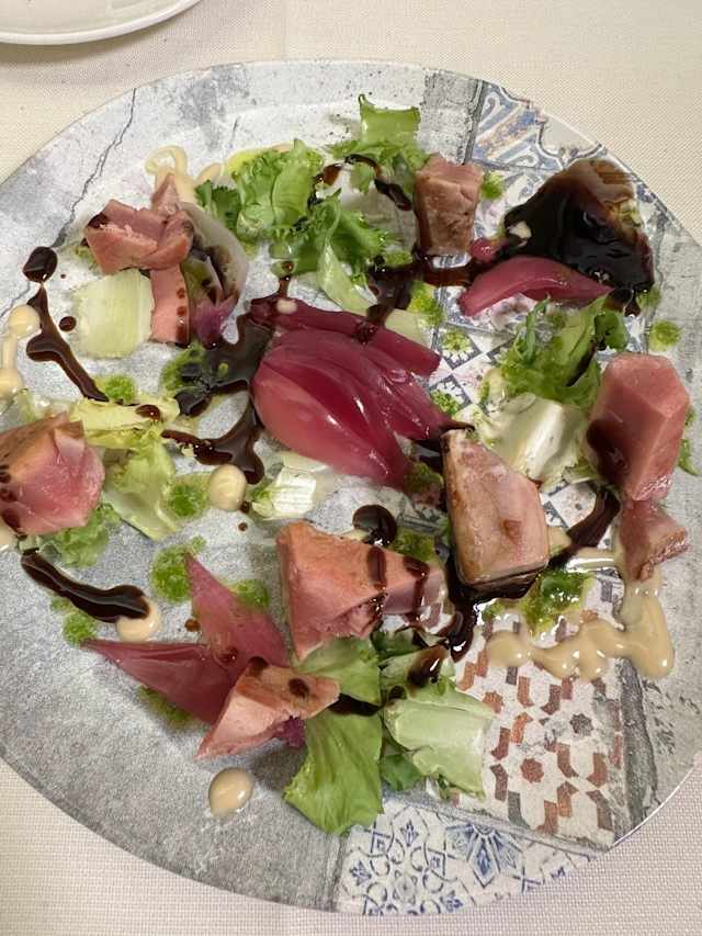 - Tataki di tonno, cipolla rossa in agrodolce e maionese alla soya