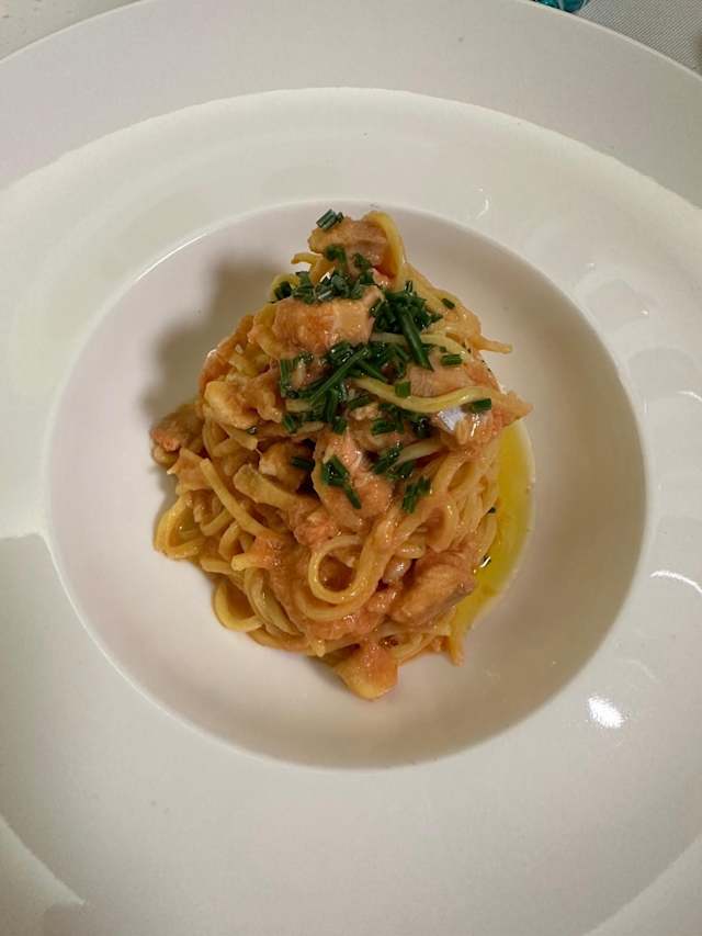 - Tagliolini di pasta fresca con ragù di pesce di “lago”