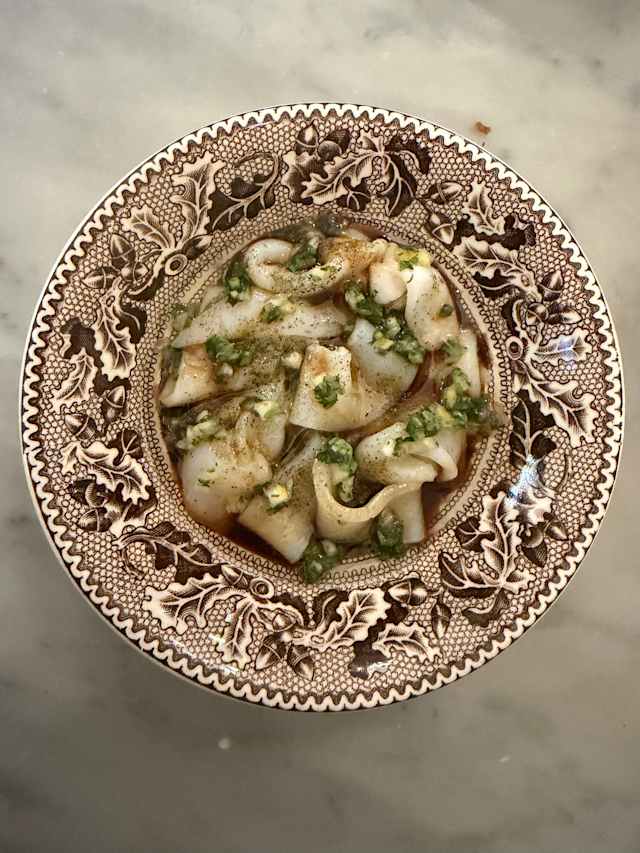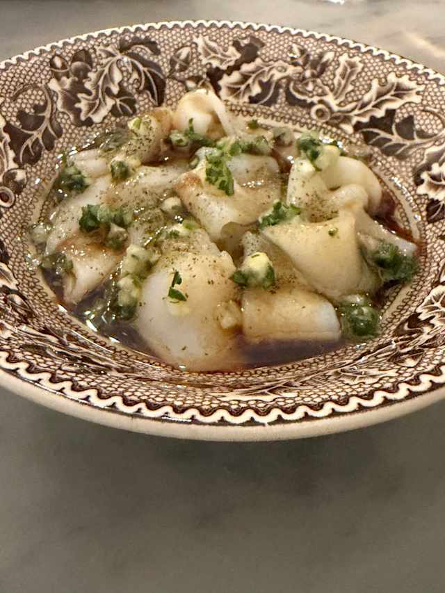 - Squid, beef fat, lemon, and rosemary