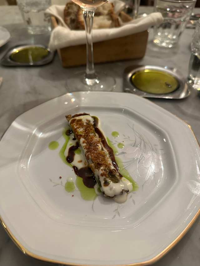 - Smoked potato "tortello", cultured butter, caviar and dill