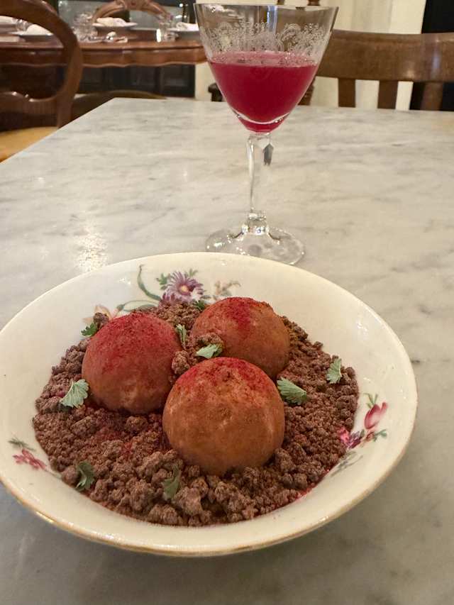 - Grilled sheep tartare, béarnaise, and tarragon
