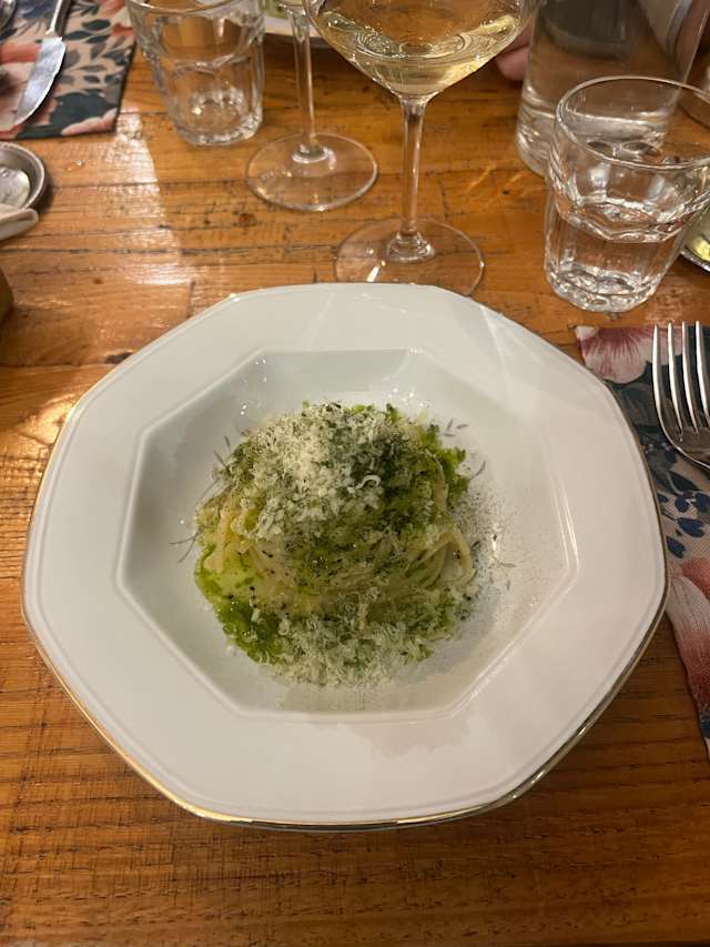 - ”Mancini” linguine, kiwi, sheep’s cheese and basil