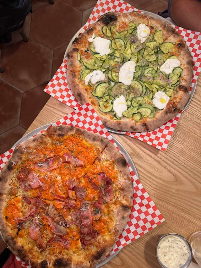 - Mozarela, curgete, chalotas, queijo burrata, queijo pecorino, orégãos e azeite extra virgem.