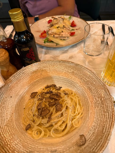 9.5/10The food was fabulous.I had jerusalem artichoke flan as a starter and then paccheri with octopus and burrata cheese and fresh tomatoes. Would order both again. The only negative is the amount of Italians that smoke at the dinner table outside. A quick way to ruin a lovely meal. Obviously, not the fault of the establishment.
