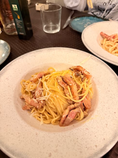 9.5/10The food was fabulous.I had jerusalem artichoke flan as a starter and then paccheri with octopus and burrata cheese and fresh tomatoes. Would order both again. The only negative is the amount of Italians that smoke at the dinner table outside. A quick way to ruin a lovely meal. Obviously, not the fault of the establishment.