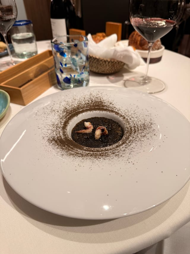 2.5/10No bottled water, have “osmosis” machine but water tasted like tap. No sommelier - couldn’t find a dry white wine that was crisp and refreshing (happened to another couple). The dirty rice was squid based and was just fishy smelling and tasting. It was also way too liquidy. Didn’t eat it. Didn’t get my first course for an hour. The courses with fish stink up the restaurant and does not make for a pleasant environment. Took forever for second course. So long. Don’t understand the issue? My first knife didn’t cut through the steak Steak is tough and fatty/chewy. Hard to eat. There was a dessert called spaghetti and we asked the chef if it was spaghetti and he said yes …. It was ice cream with tomato sauce and basil and it was inedible. Not pasta. Then they tried to fully charge me for food I DIDN’T eat. Bad experience all around, do not recommend.