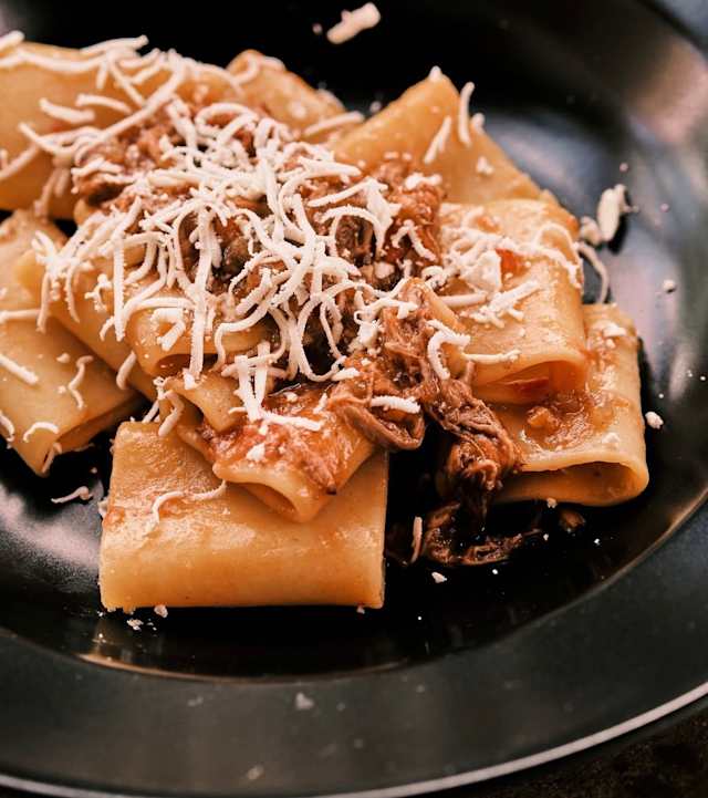 - Polenta gialla bramata con sugo di salsiccia e spuntature