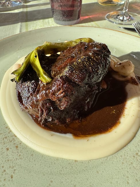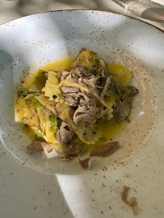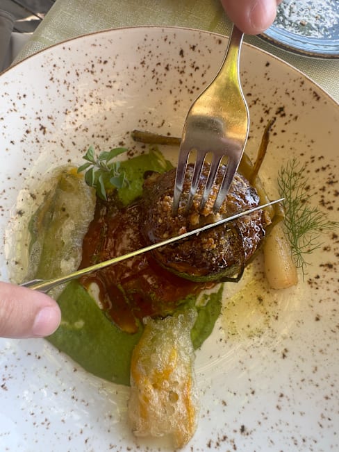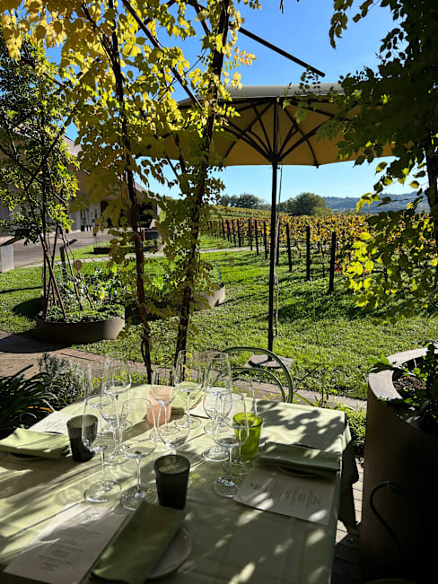 10/10The setting was stunning — dining right among the vineyards with views of the rolling Tuscan (or regional) landscape. The food was beautifully executed, with each dish clearly inspired by local, seasonal ingredients. Wines came directly from the estate and were perfectly paired with each course — tasting them where they’re made added a unique dimension. The staff were knowledgeable, especially about the wines, and their passion came through in every explanation. The pace of the meal allowed time to enjoy both the food and the surroundings — relaxed but attentive service. Small details stood out — from handmade pasta to freshly baked bread to an unplanned cellar tour after dessert.