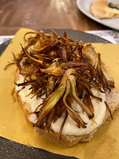 10/10I'm so glad this was our last dinner in Rome; what a way to go out with a bang! Every dish was terrific. The best carciofi alla giudìa we had, and I tried a few. Perfectly al dente pastas and perfectly composed pizzas. My kid was utterly charmed by the suppli served in a little shopping cart; it was crispy and delicious as well as adorably served. Our server (I forget her name, I'm sorry!) responded to my request for a very dry white wine with a glass of local Pecorino (which I only knew as a variety of cheese!) that was flinty and unusual and perfect. Stars all around.