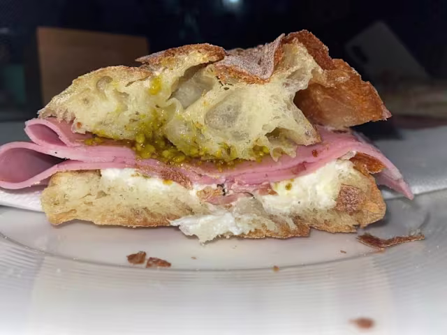 - Crudo di parma, parmigiano fuso, mozzarella e granella di pistacchio