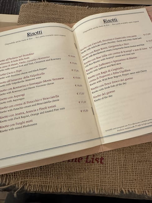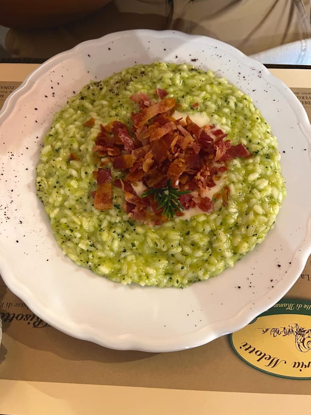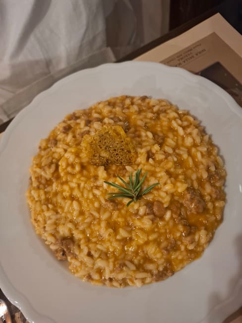 9/10The risotto we had was amazing: taste, texture and presentation were all perfect. The ambience of the restaurant is simple and less exclusive than the food. The waiters that took care of us were attentive and quick. One of them was so polite and polished, that it took away the human connection from the conversation. It felt quite robotic for a country like Italy.