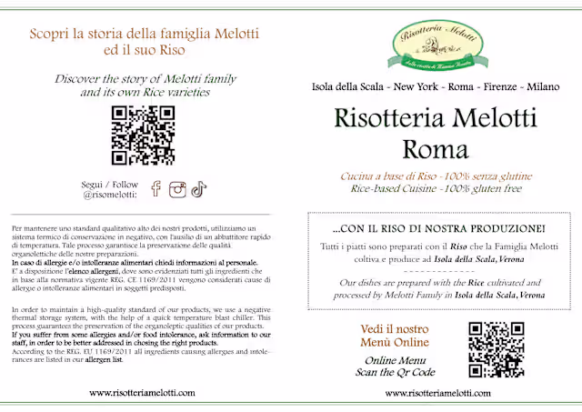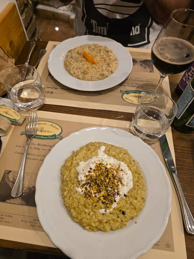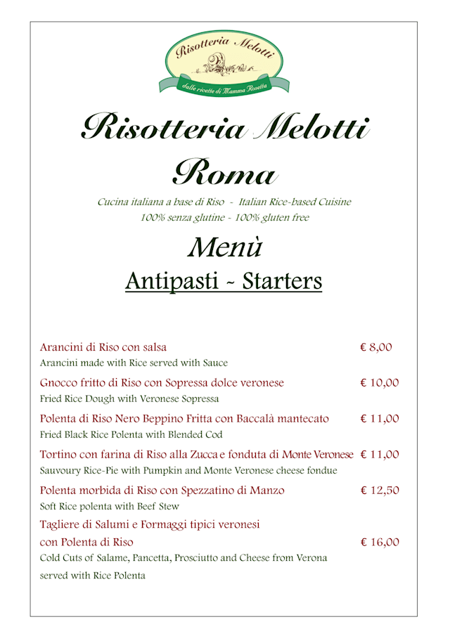6/10I have been traveling in Europe for over 5 weeks. I've had some really amazing experiences at many different restaurants. As someone with celiac disease, my first and most important consideration is safety. Risotteria Melotti Roma totally achieved that. However, I found the service to be less than ideal. My waiter was impatient when I took a little while making up my mind. He forgot to serve me my first course, but rectified that. Basically, I found the service to be brusk and unkind. At the end, he asked for a tip.