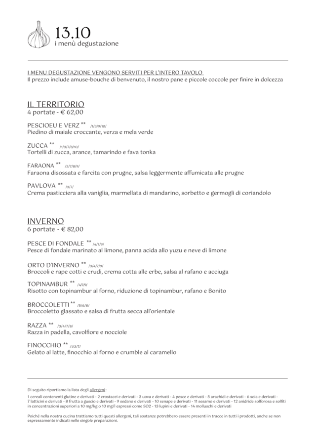 Autunno (6 portate)€82 per guest