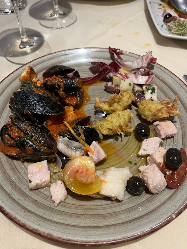 10/10Wow, the antipasti octopus salad and mussle clam soup were amazing! Our waiter (also son of the chef) was super nice and selected a wonderful menu with us. The stewed fish with white wine and olive sauce was the best we ever had. We had a lovely last night in Cagliari thanks to 51!