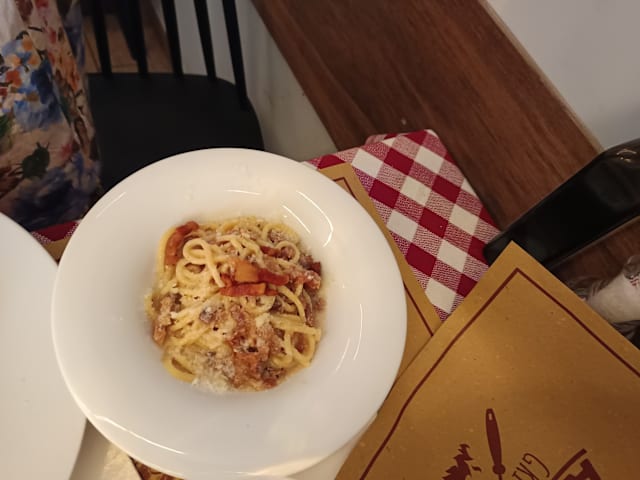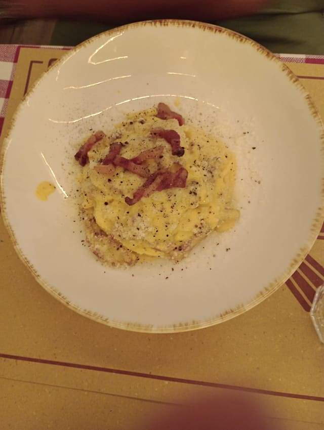 SPAGHETTI WITH EGGS, BACON, PECORINO CHEESE AND BLACK PEPPER