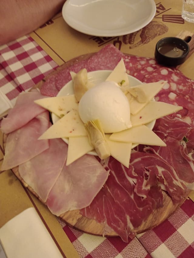 ANTIPASTO DI TERRA (PER DUE PERSONE) MISTO SALUMI E MISTO FORMAGGI AL MIELE CON CARCIOFINI E OLIVE