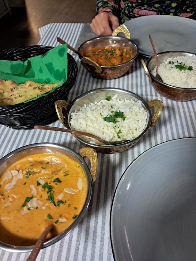 Pollo preparato all'antica ricetta maraja in salsa curry cremosa alle mandorle