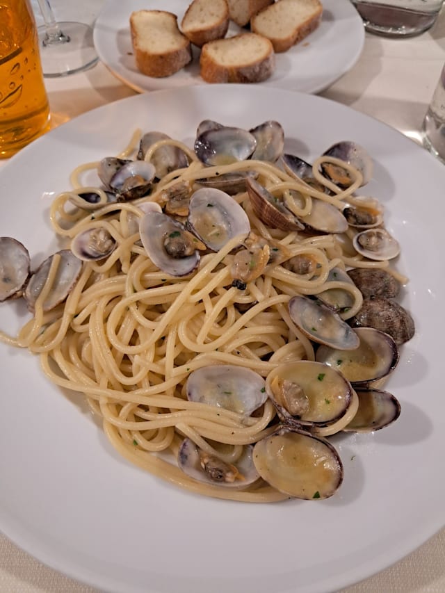 8.5/10We returned for our second visit in three days. Once again the owner/manager gave us a warm and friendly welcome. The food is simple but well prepared. Fresh grilled anchovies, tuna steak, octopus salad, ravioli, clam spaghetti, steak were all freshly made and of good quality. There was a mixture of tourists and locals which is always a good sign. We shall certainly return again on our next visit to Genoa.