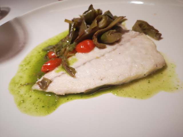 - Filetto di rombo su zattera di asparagi e pomodorini