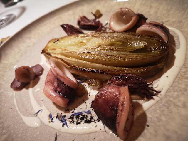 - Agnello cotto lentamente con crema di sedano rapa, indivia e ribes